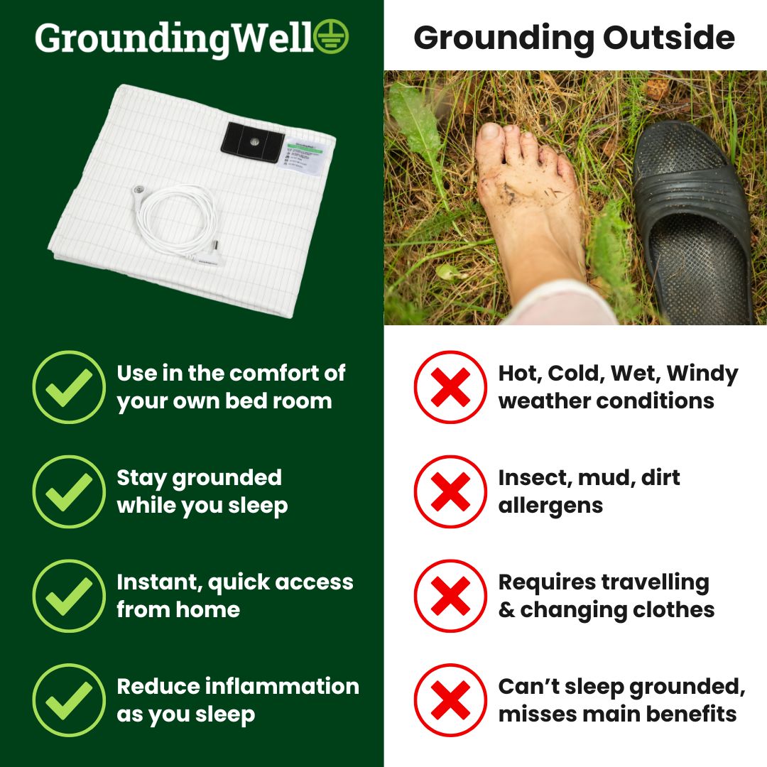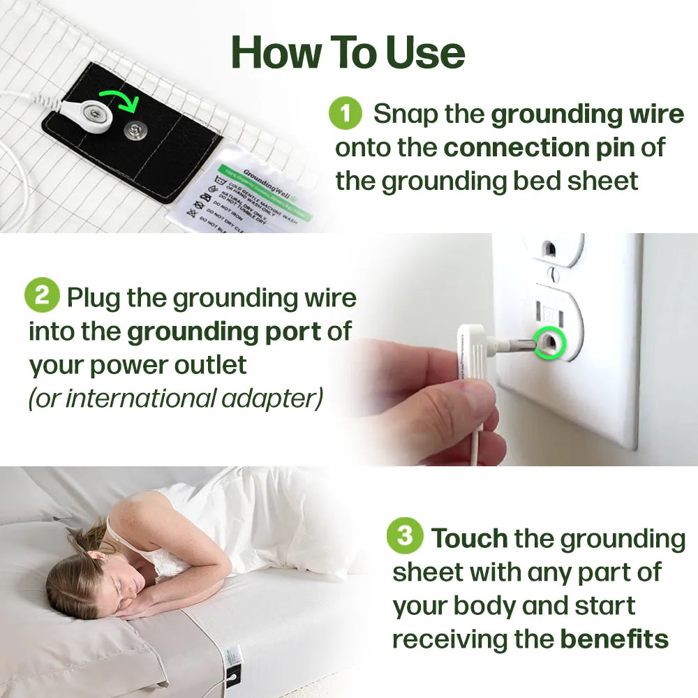 The GroundingWell Bedsheet transfers the Earth's electrons into your bed through the grounding cable in your wall. This allows you to receive the nurturing benefits of grounding during the comfort of your night's sleep.